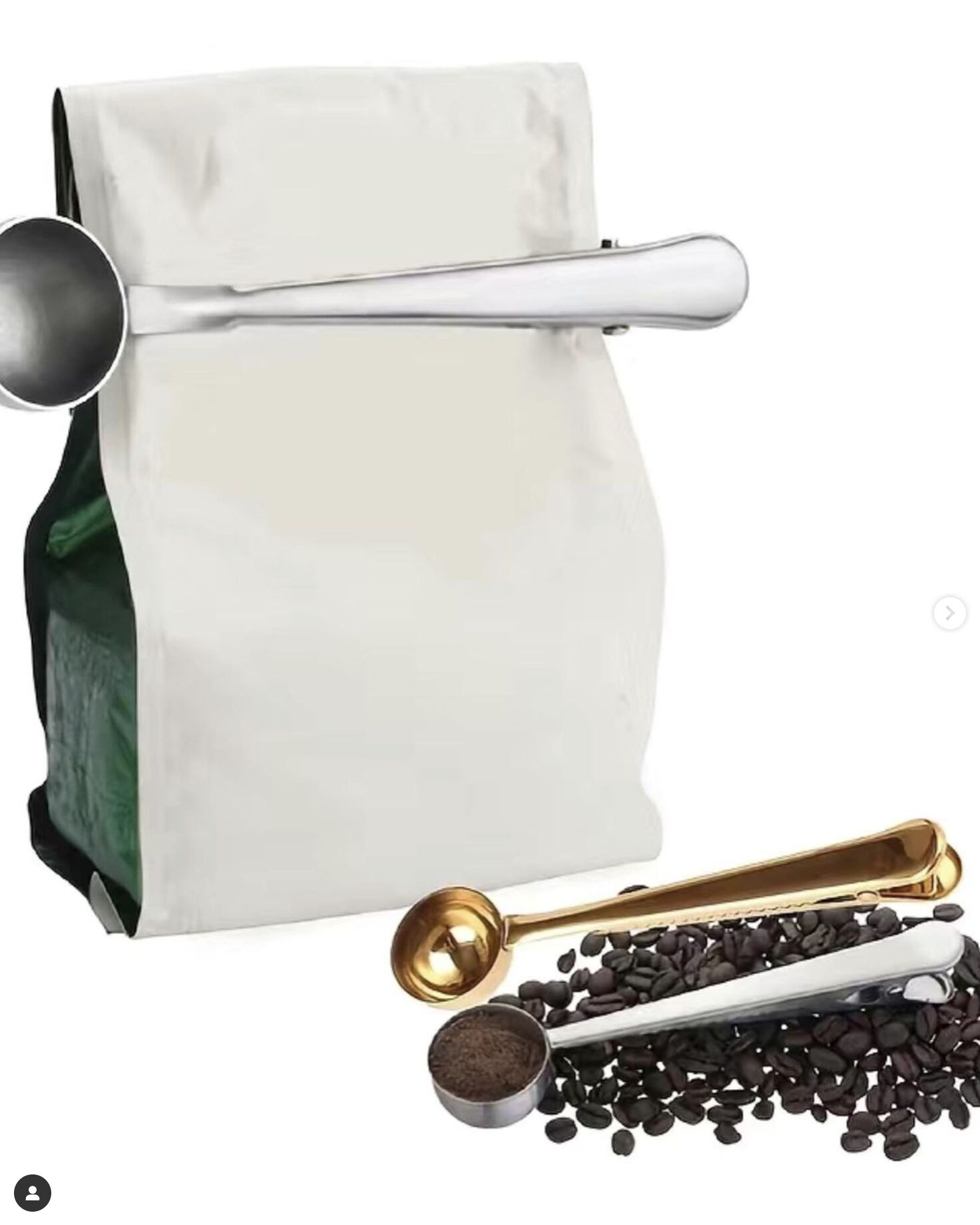 Stainless Steel Coffee Spoon and Sealing Clip 2 in 1, Color Plateado y color Dorado